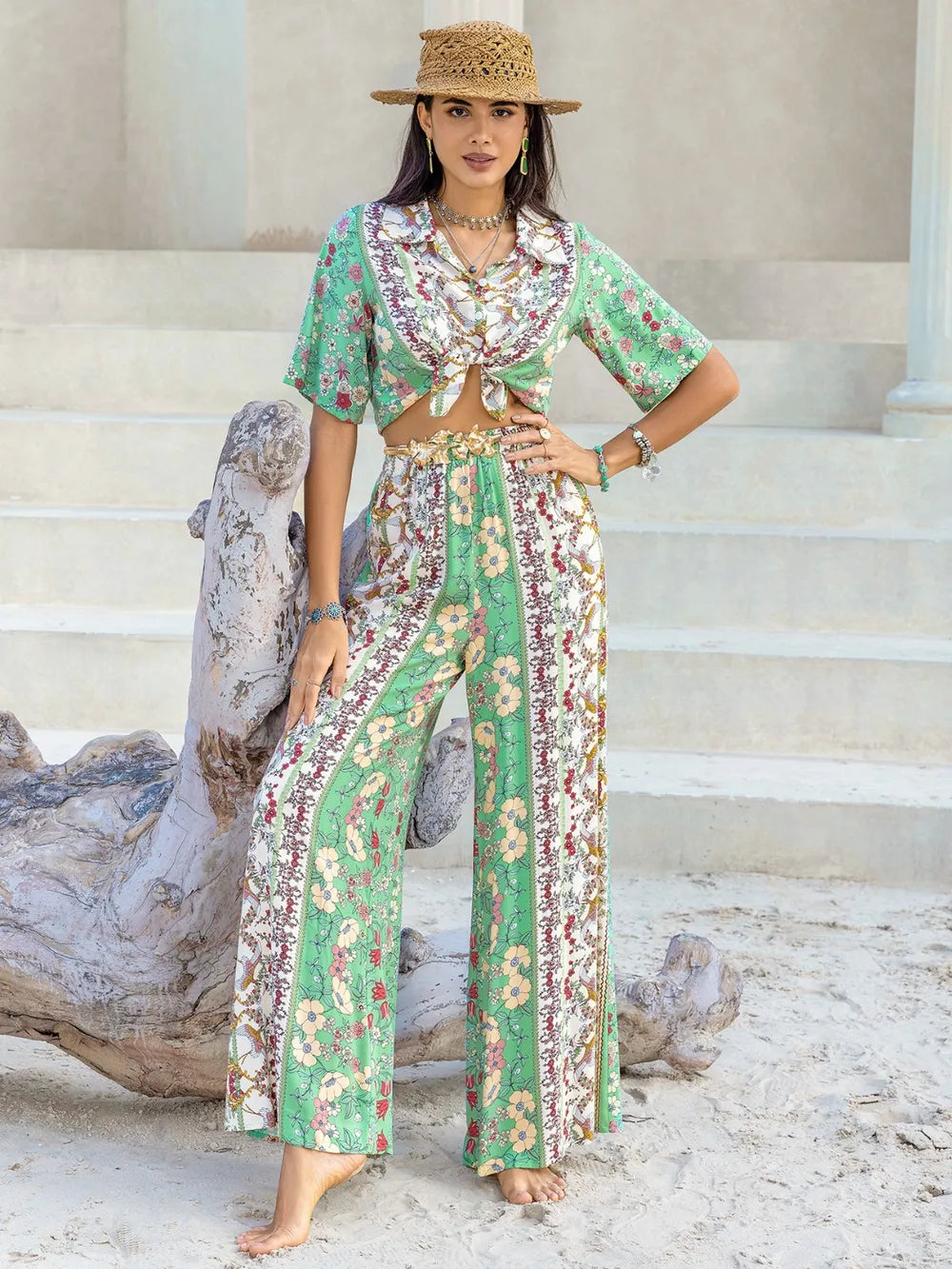 Printed Half Sleeve Top and Wide Leg Pants Set